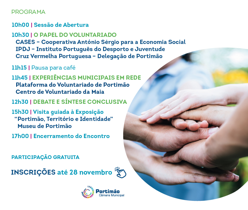 No âmbito da Semana Municipal do Voluntariado, que decorre de 2 a 5 de dezembro, o Município de Portimão promove o I Encontro Intermunicipal de Voluntariado.
