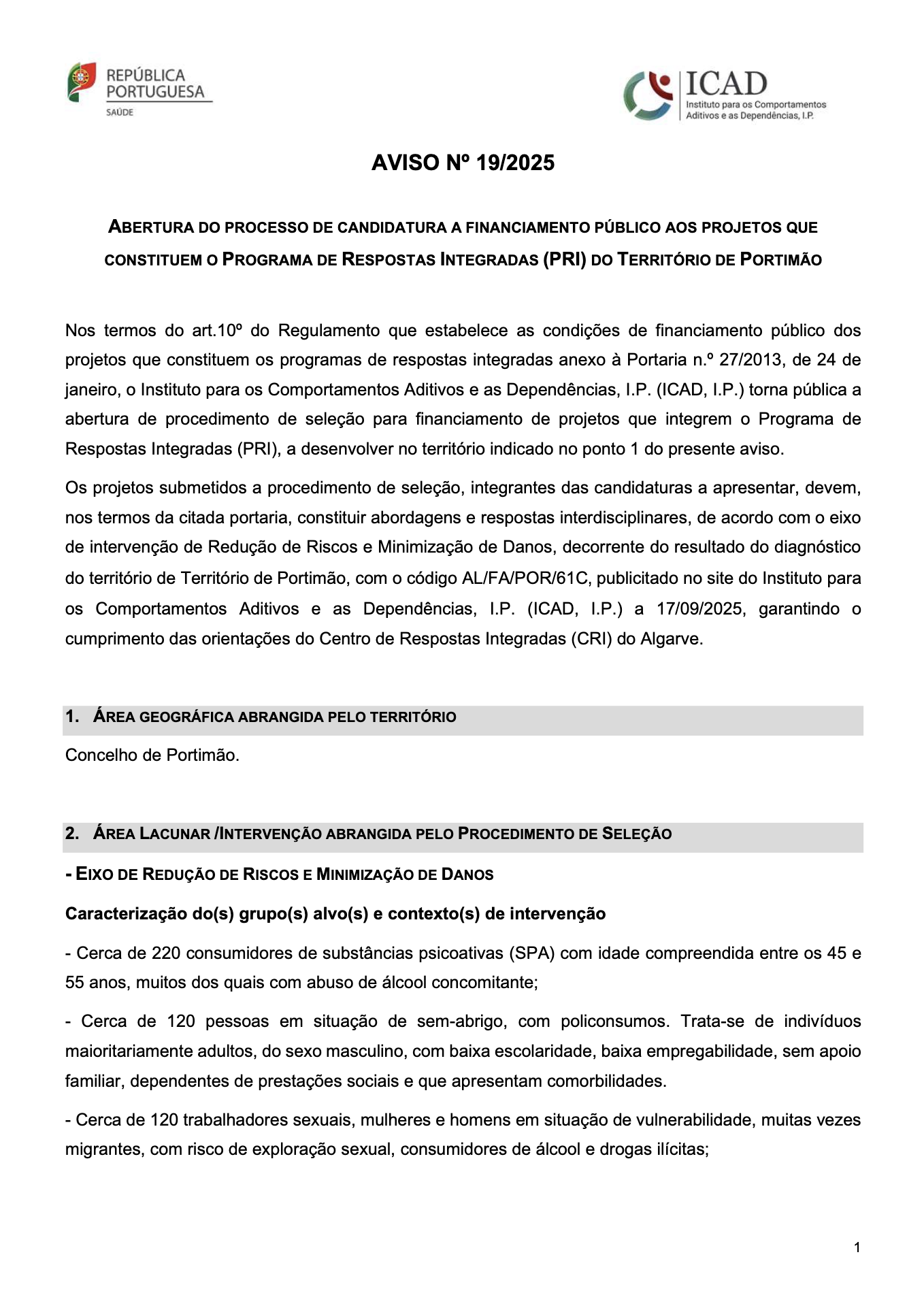 Aviso n.º 19/2025 - Abertura do Processo de Candidatura a Financiamento Público