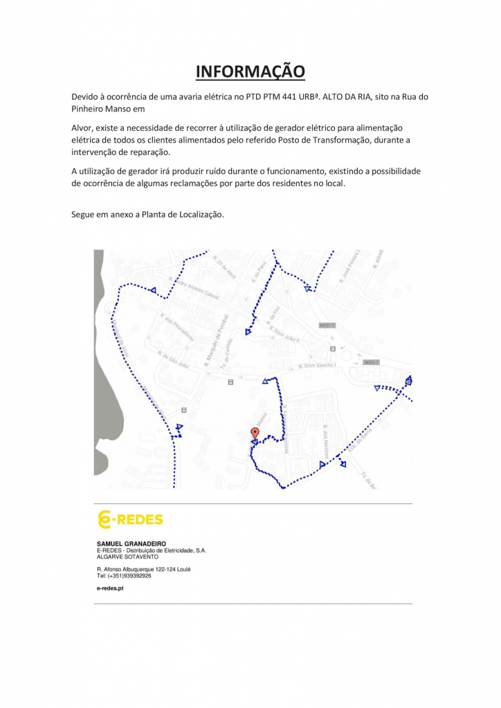 Avaria PTD PTM 441 URBª. ALTO DA RIA - Rua do Pinheiro...