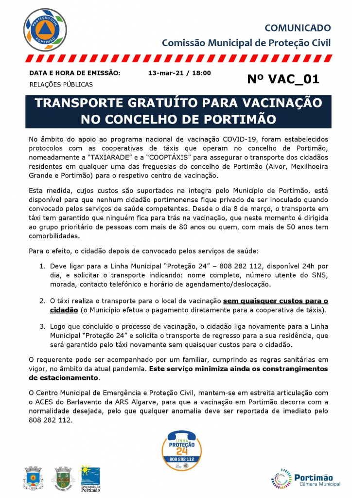Transporte Gratuito para Vacinação no Concelho de Portimão