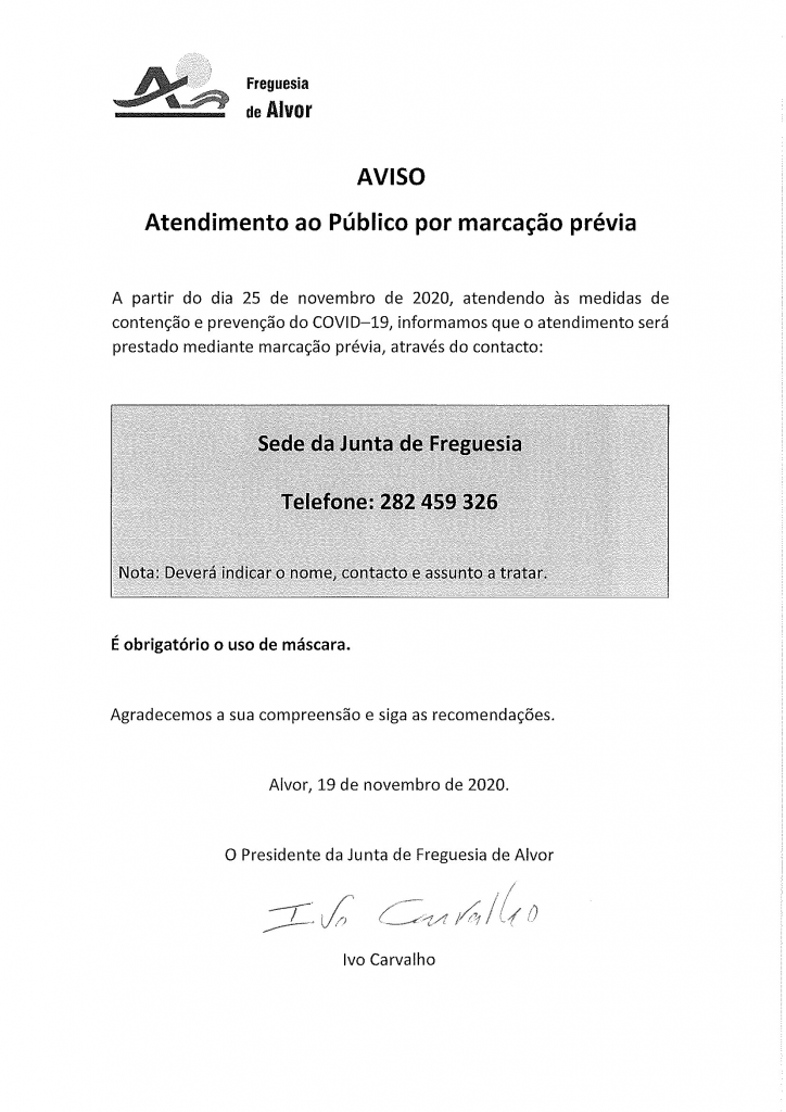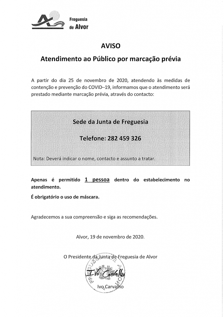 Aviso - Atendimento ao público por marcação prévia