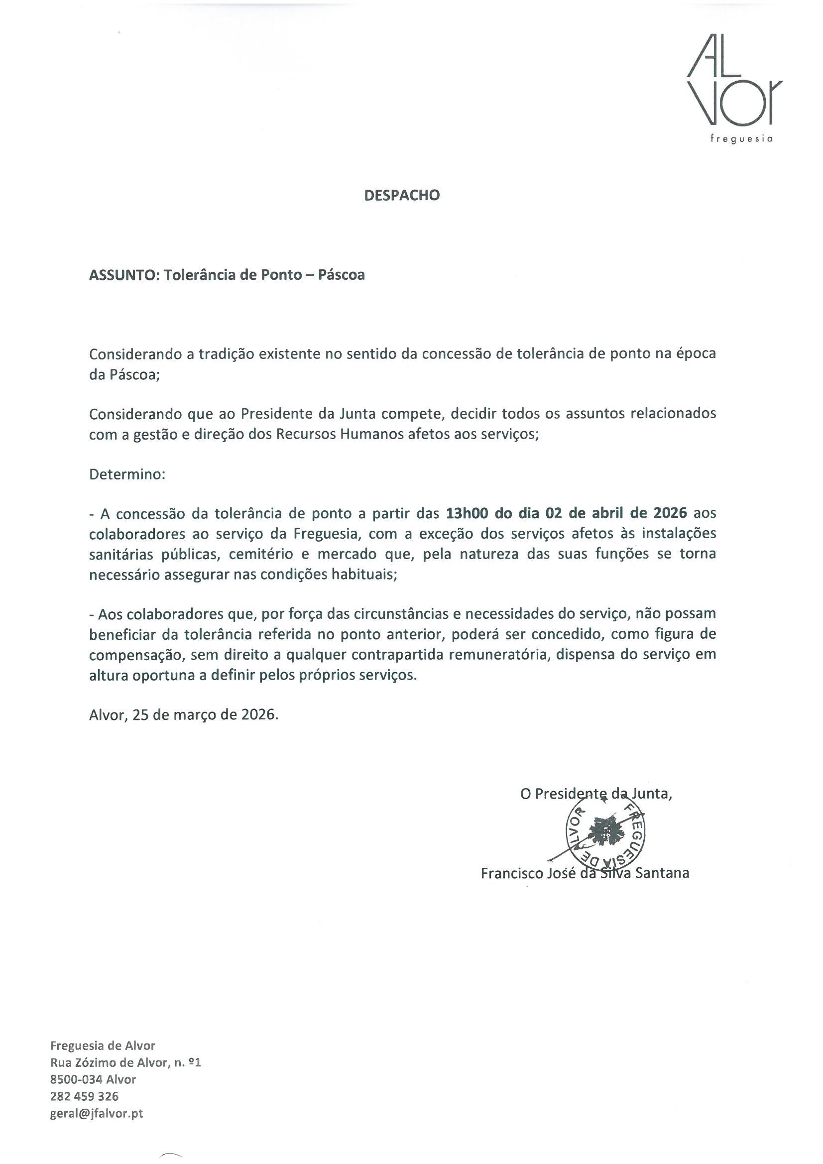 Olhar nos dias de hoje para a Freguesia de Alvor e perspetivar o futuro é um desafio constante, a pequena vila piscatória à beira mar plantada que tão bem nos carateriza, conta hoje com mais de seis mil habitantes e está quase interligada, desde as praias às zonas mais interiores e periféricas da Freguesia.
